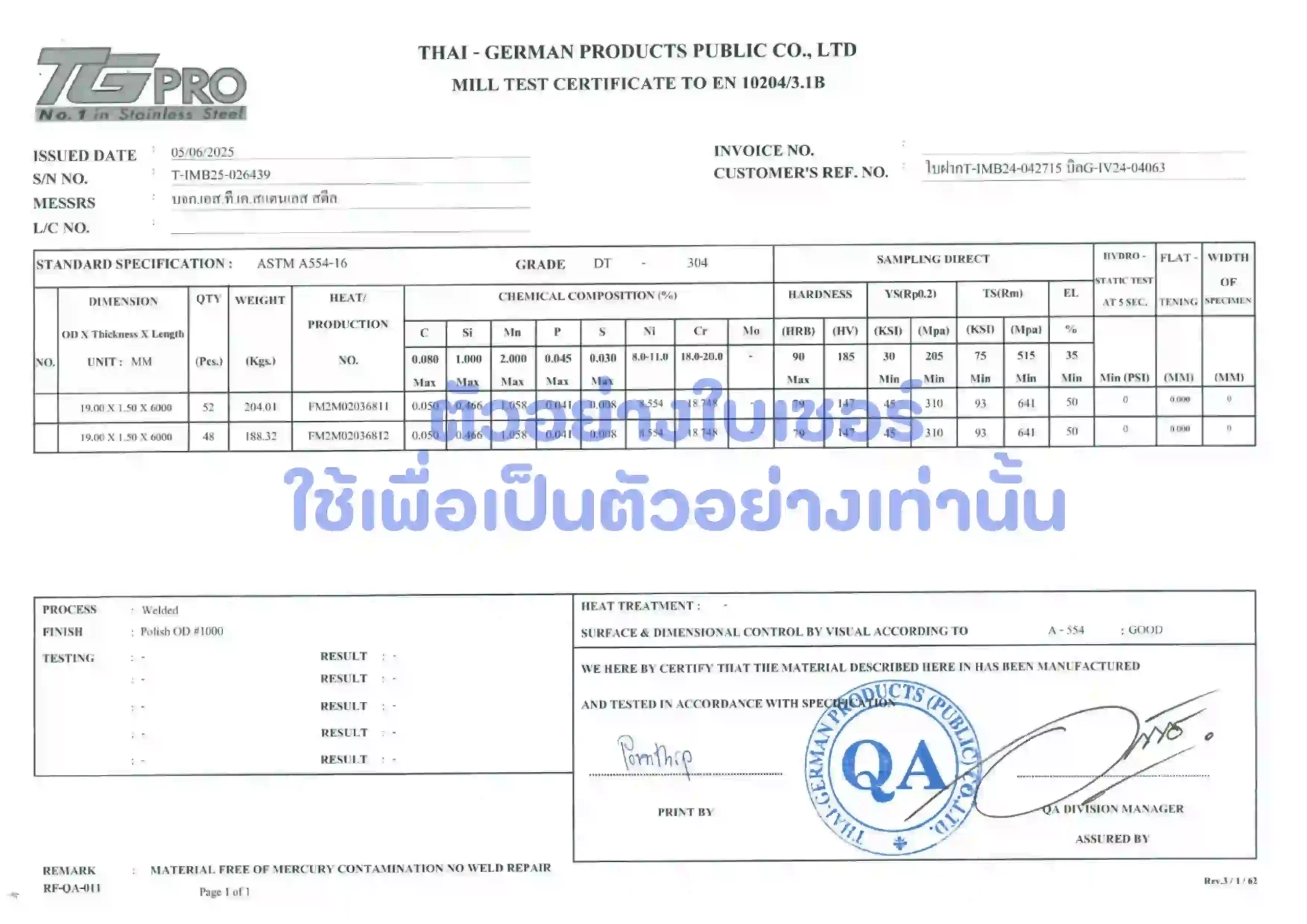 ➡️ เกรด 304