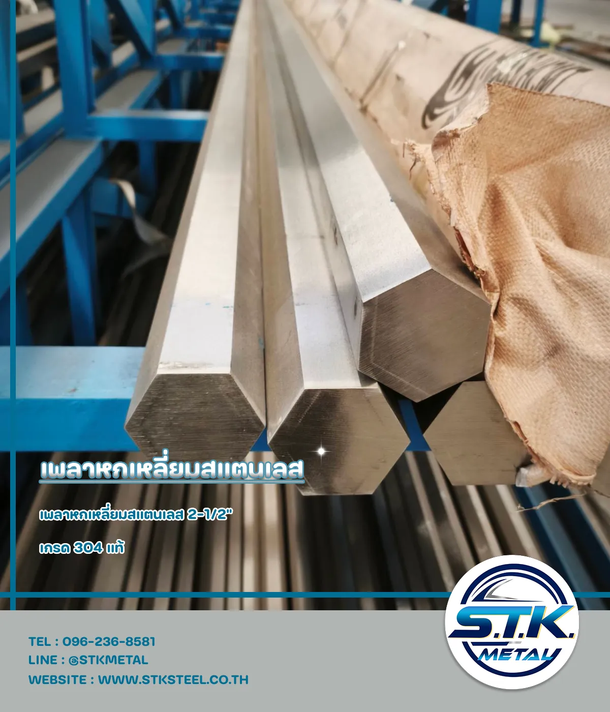 เพลาหกเหลี่ยมสแตนเลส 2-1/2 นิ้ว เกรด 304 (63.5 มิล หรือ 2 นิ้ว 4 หุน)
