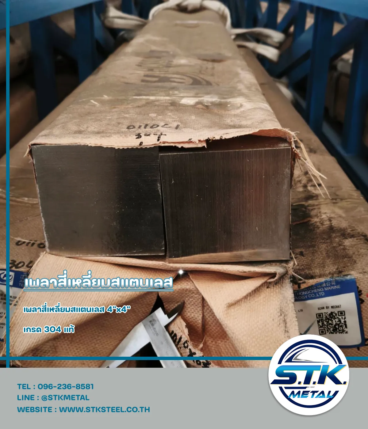 เพลาเหลี่ยมสแตนเลส 4x4 นิ้ว เกรด 304 (101.6 มิล หรือ 4 นิ้ว)