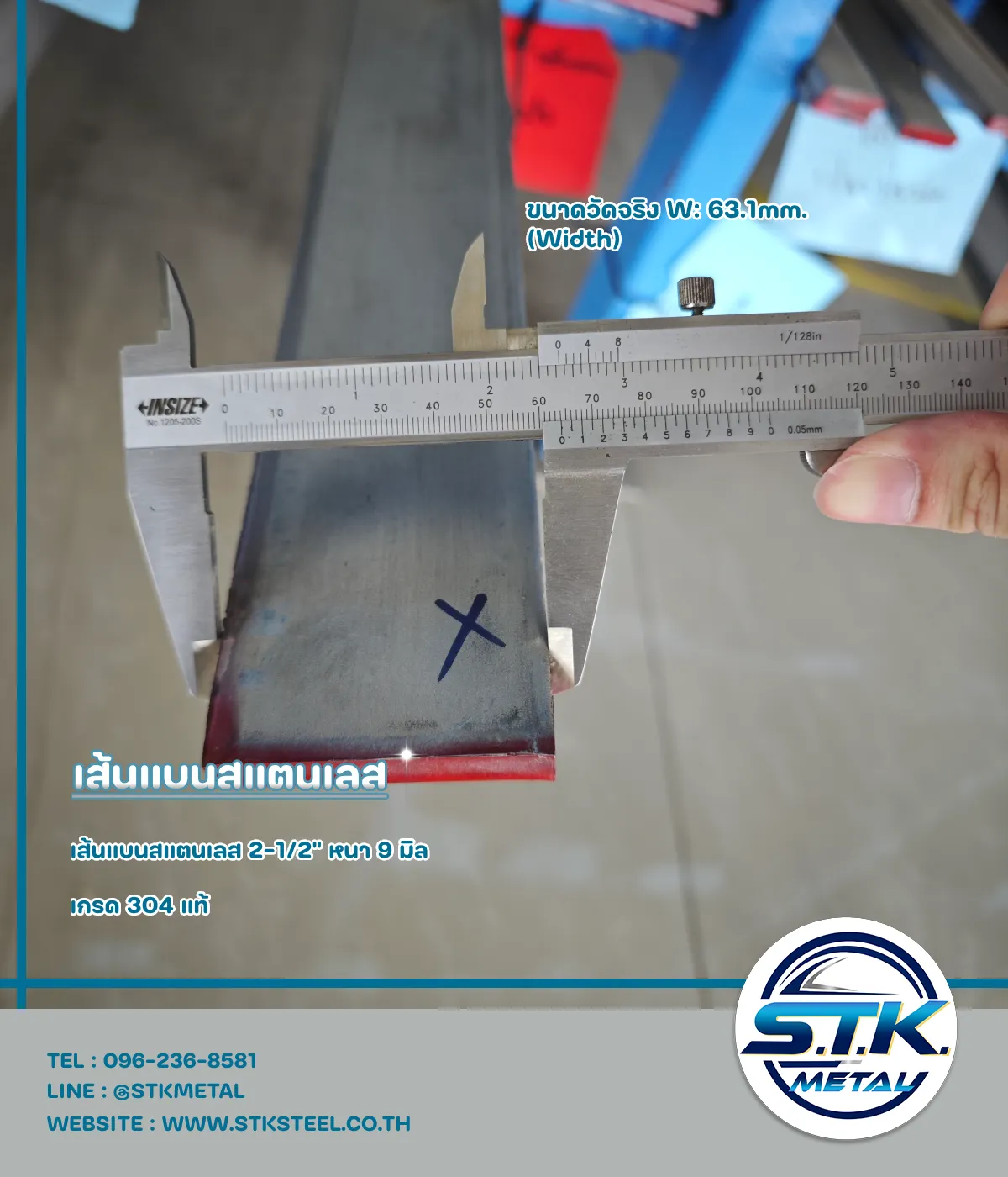 เส้นแบนสแตนเลส 2-1/2 นิ้ว หนา 9.0 มิล เกรด 304