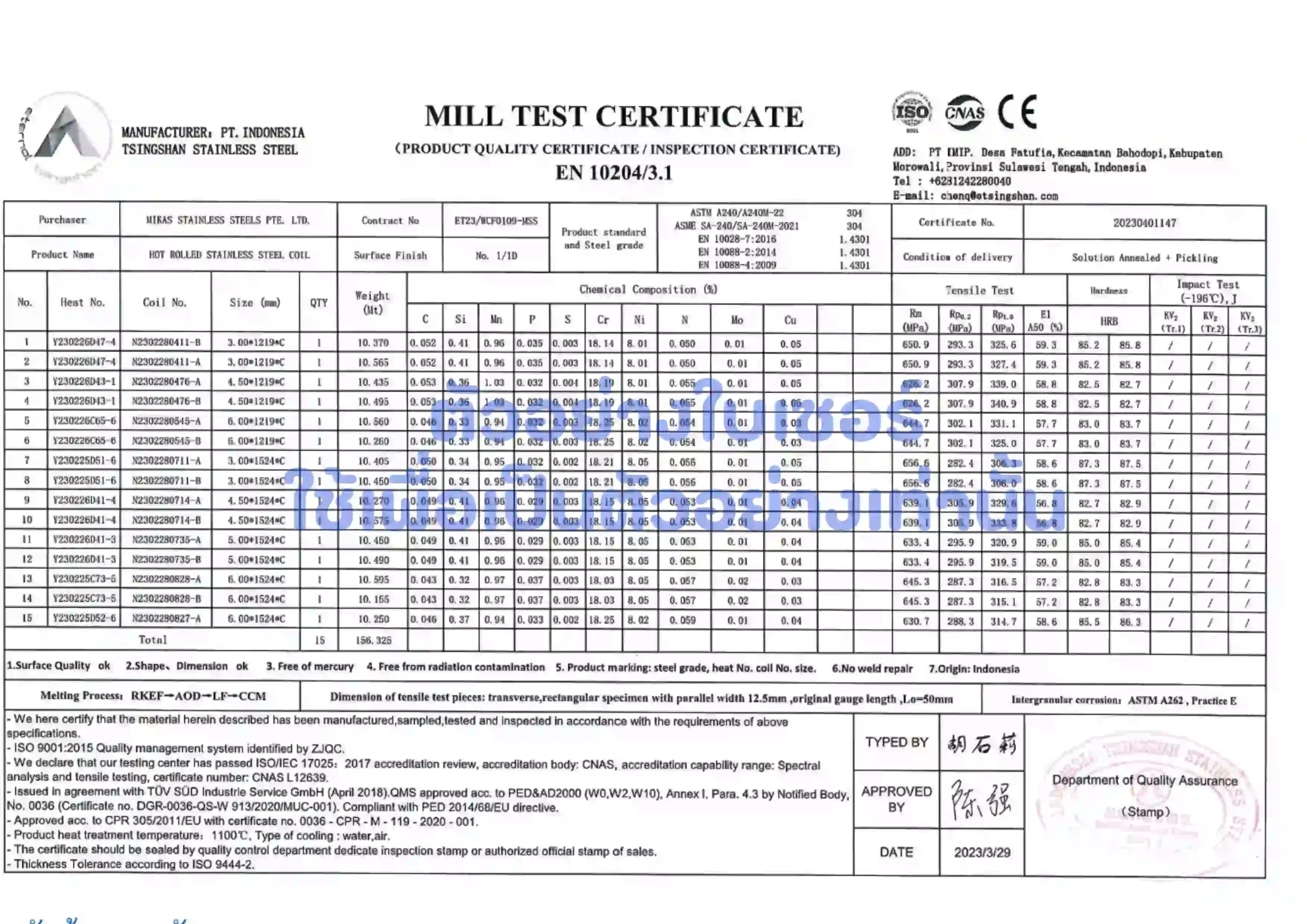 ➡️ ผลิตภายใต้มาตรฐาน ASTM A240