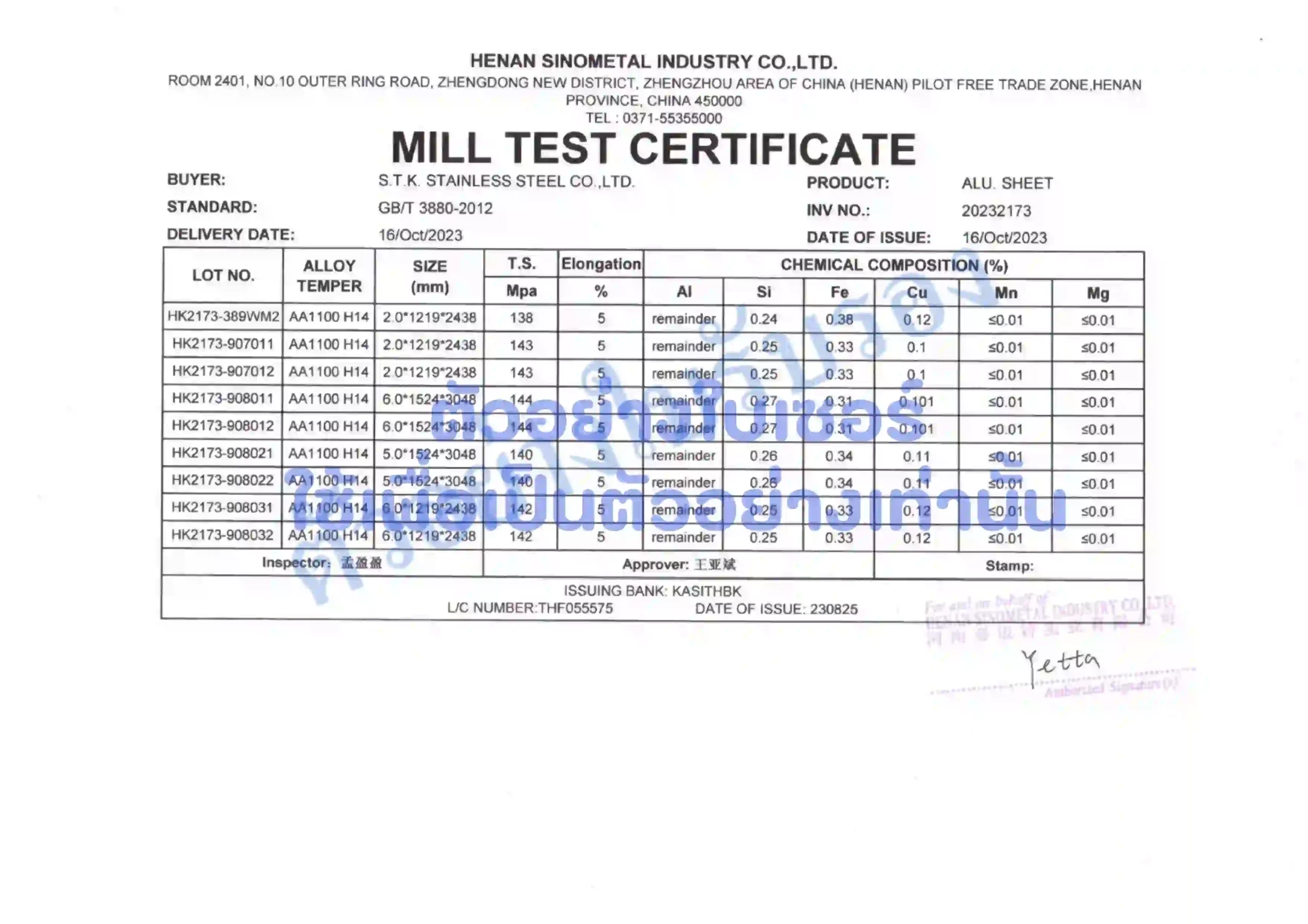 ➡️แผ่น อลูมิเนียม A1100 2.0 mm. 4’x8′ = 1765 บาท/แผ่น(ราคาใช้ได้ถึงวันที่ 31/10/2023)